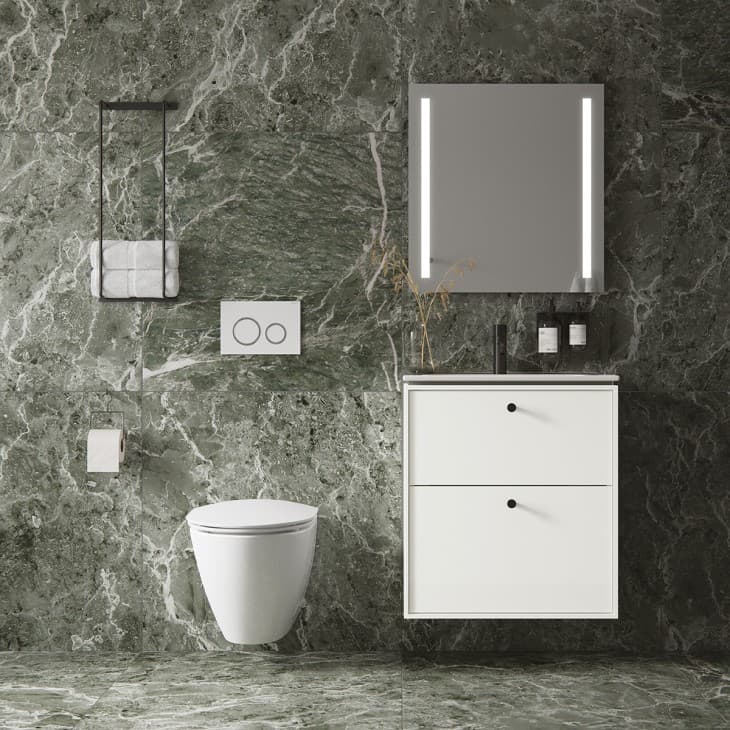Om möjligt så rekommenderar vi en vägghängd WC-stol istället för en golvstående. Eftersom cisternen och spolmekanismen är inbyggd i väggen så sparar det värdefull plats. Ditt badrum blir också enklare att städa eftersom du lätt kommer åt under en vägghängd modell.